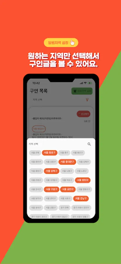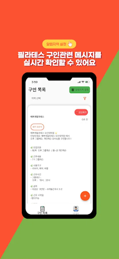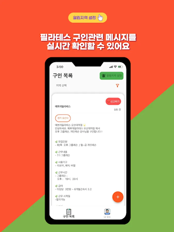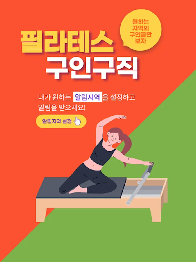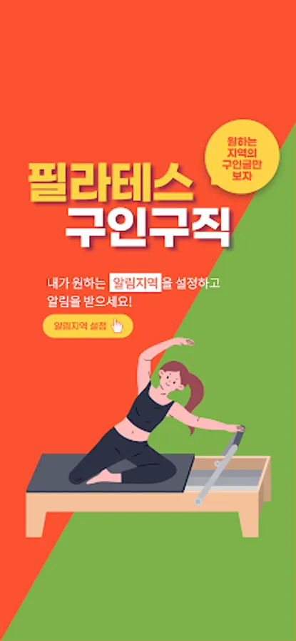 The Pilates job search app allows you to view information by filtering only the region (city, gu) you want to see.