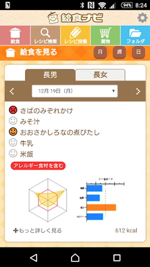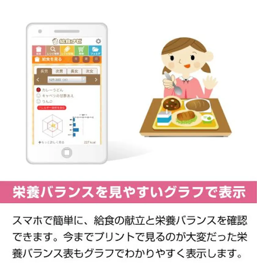 Easily with smartphones, you can check the menu and the nutritional balance of meals.