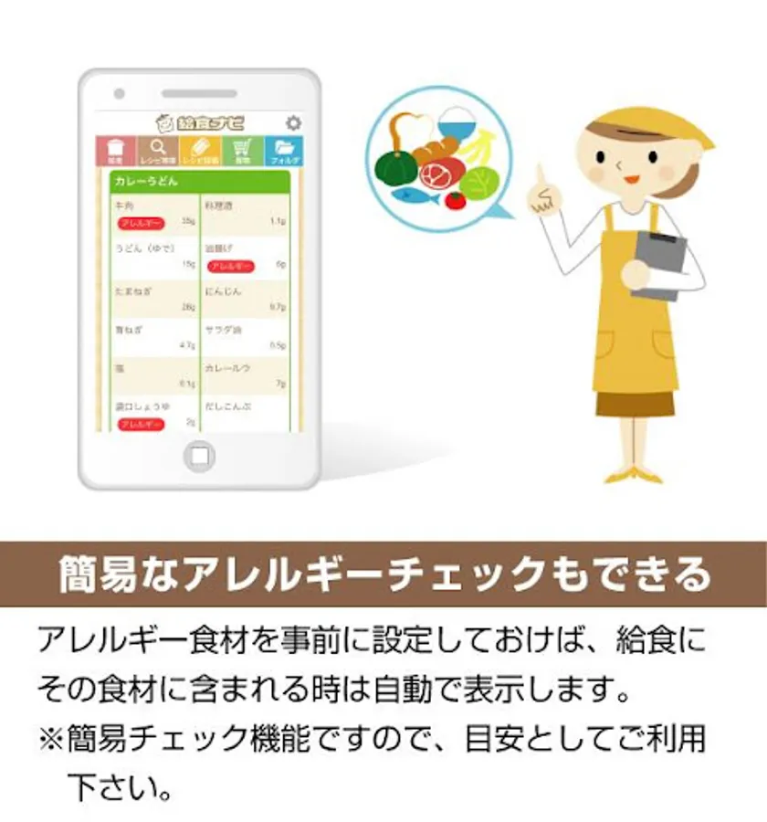 If you set an allergic food in advance, when that contains the ingredients in the meals will display automatically.