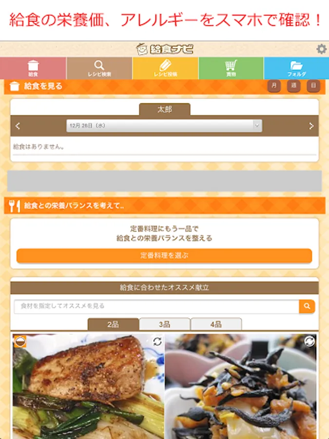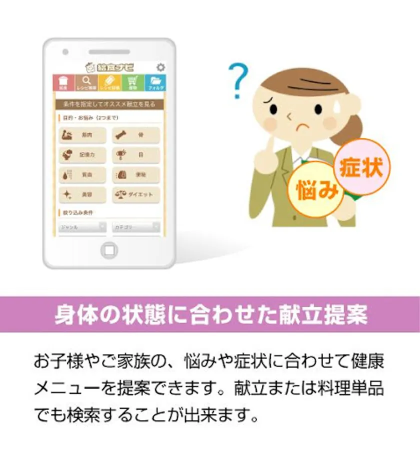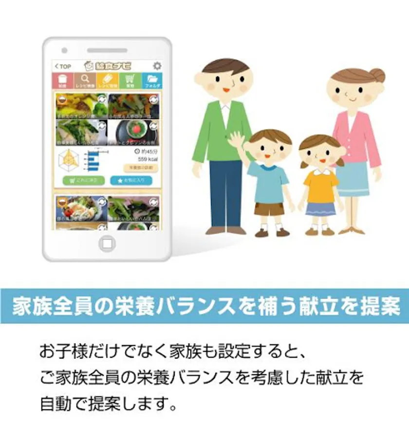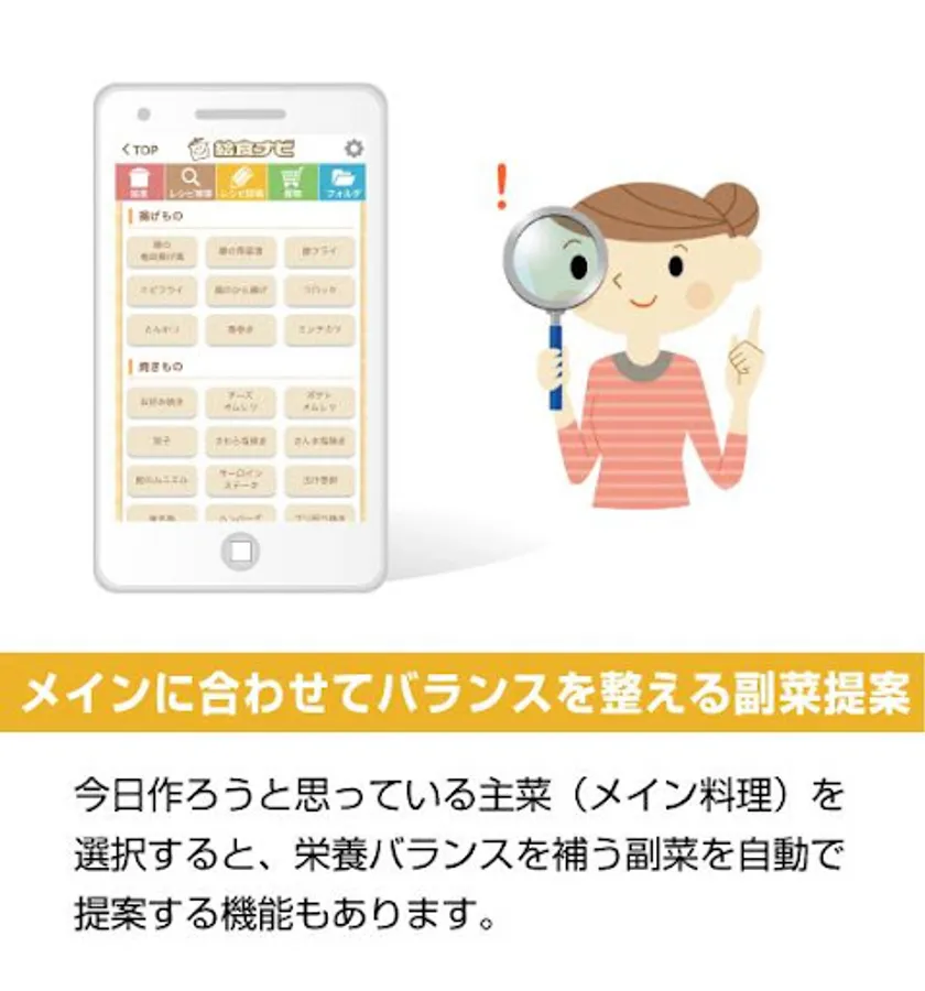 When you select a main dish (main), which want to make today, it will propose the side dishes to supplement the nutritional balance automatically.