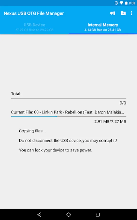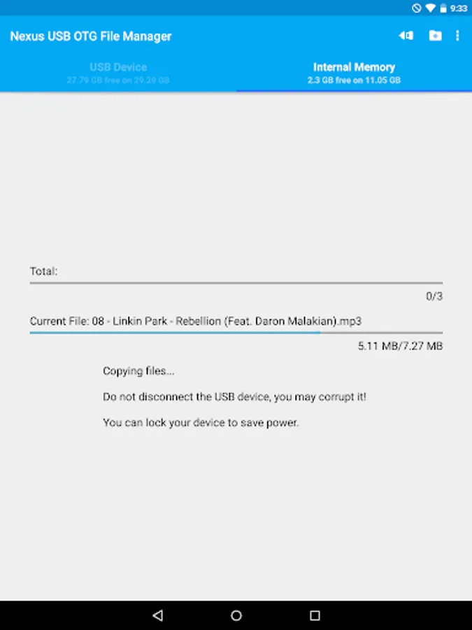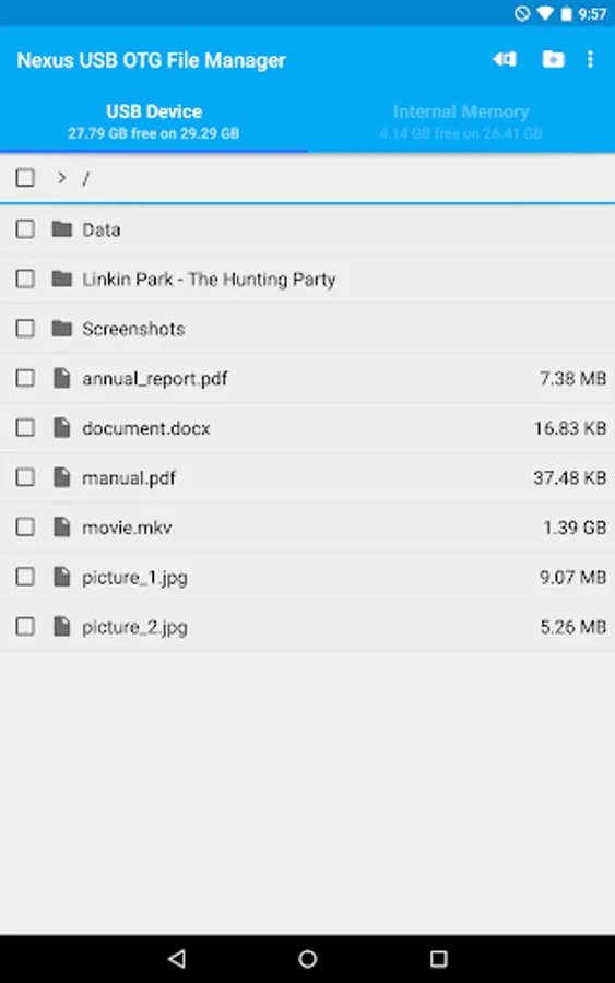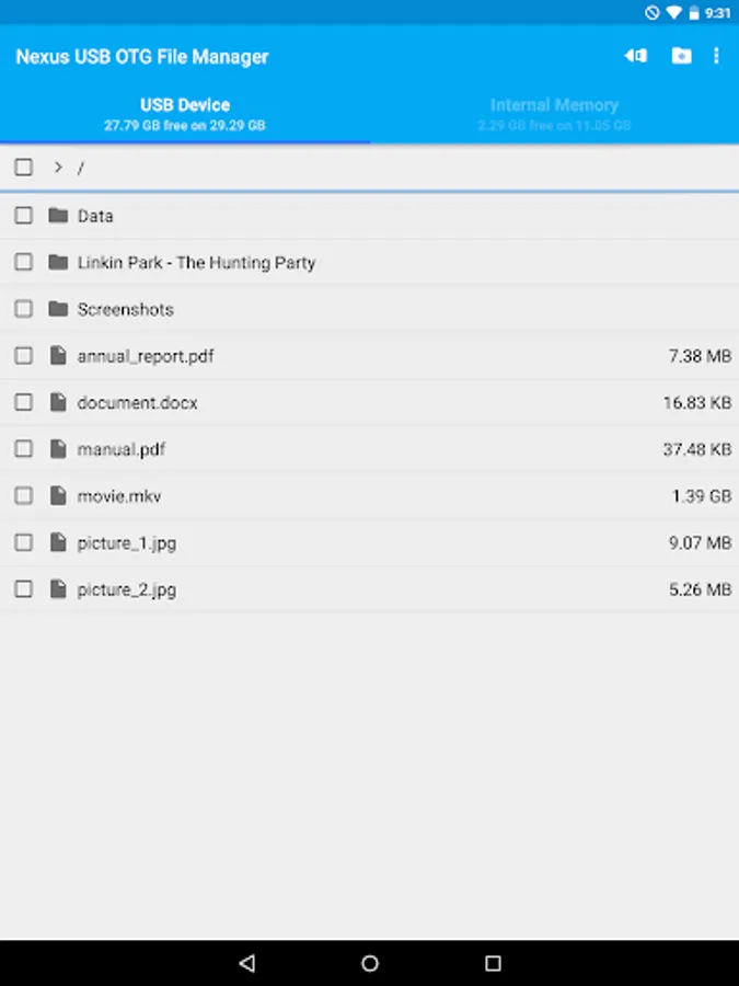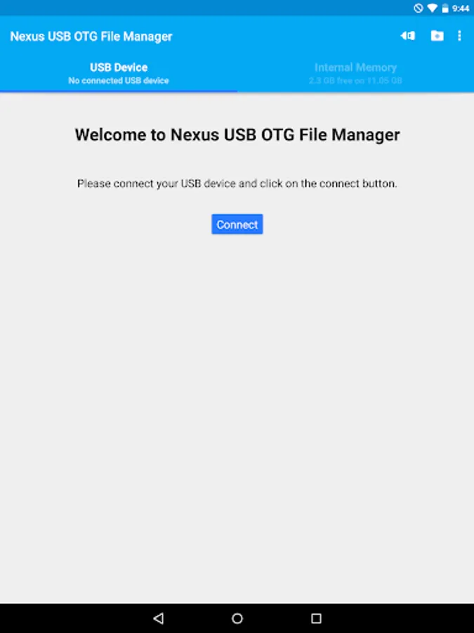 USB OTG File Manager for Nexus allows you to open and copy files from any USB mass storage device with a FAT32 or NTFS filesystem using the USB OTG port of your device, tablet or phone.