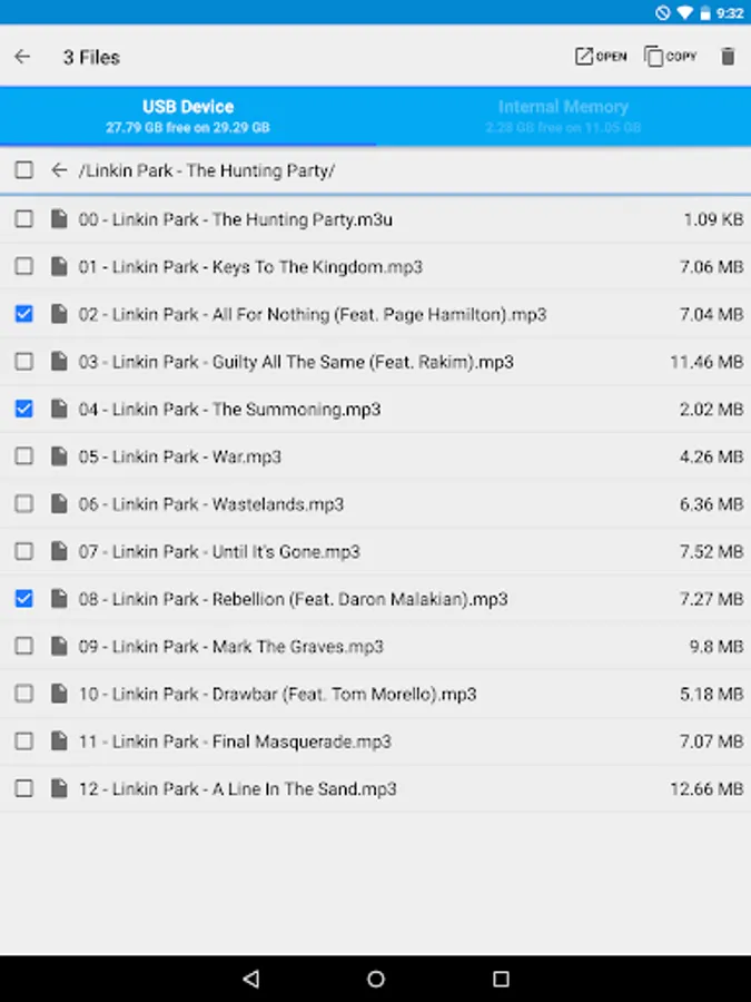 Once Simple Music Player is installed, select the files you want to play on your USB device, push the open button and select the Simple Music Player app.