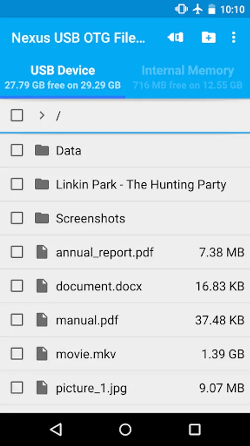 USB OTG File Manager for Nexus allows you to open and copy files from any USB mass storage device with a FAT32 or NTFS filesystem using the USB OTG port of your device, tablet or phone.