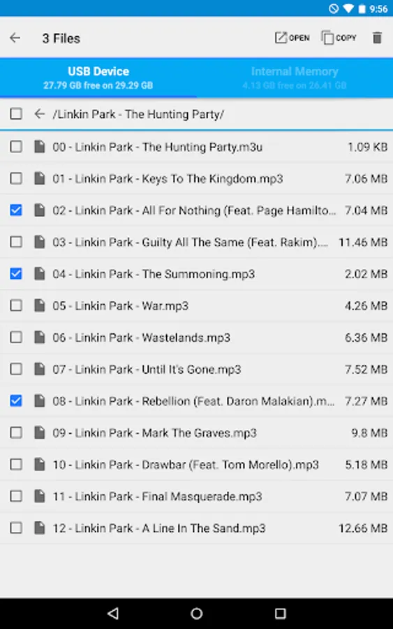 Once Simple Music Player is installed, select the files you want to play on your USB device, push the open button and select the Simple Music Player app.
