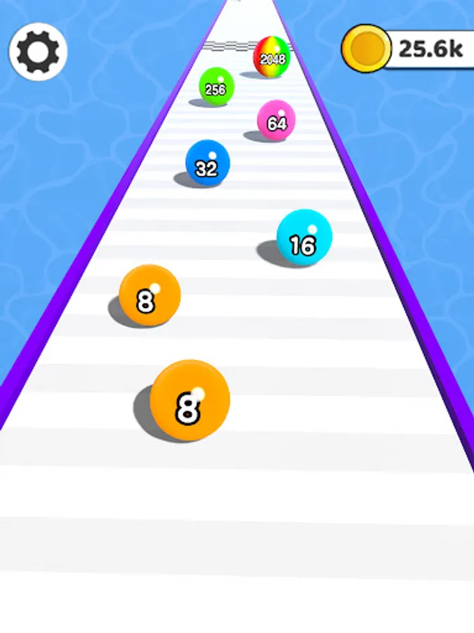โฝ This 2048 Balls - Rolling Ball Games involves Merge Numbers on the Rolling Ball to make it bigger & change the Color Ball.