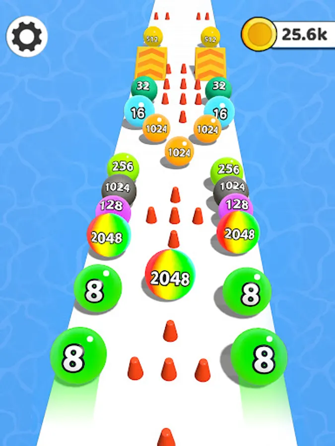 โพ Merge numbers on the rolling ball like this 2-4-8-16-32-64-128-256-512-1024-2048