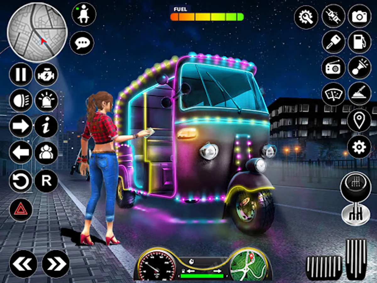 Tuk Tuk Autorickshaw Driving Games is a popular pick and drop passenger game where the player takes the role of a rickshaw driver. The objective of the rickshaw game is to pick up passengers from different city bus stops and drop them off at their desired destination while navigating through busy city roads and traffic on tuk tuk auto rickshaw. The player must also manage the rickshaw fuel and earn money from the passengers to upgrade their autorickshaw and enjoy endless rickshaw racing.