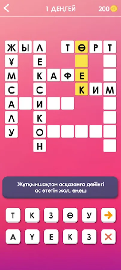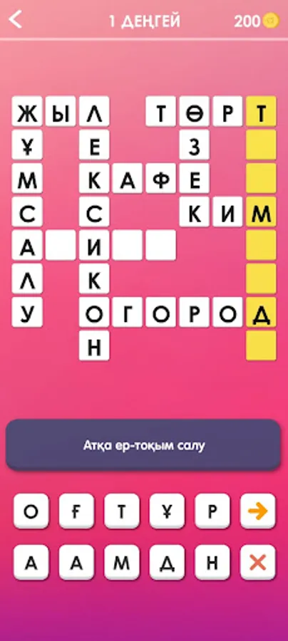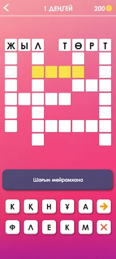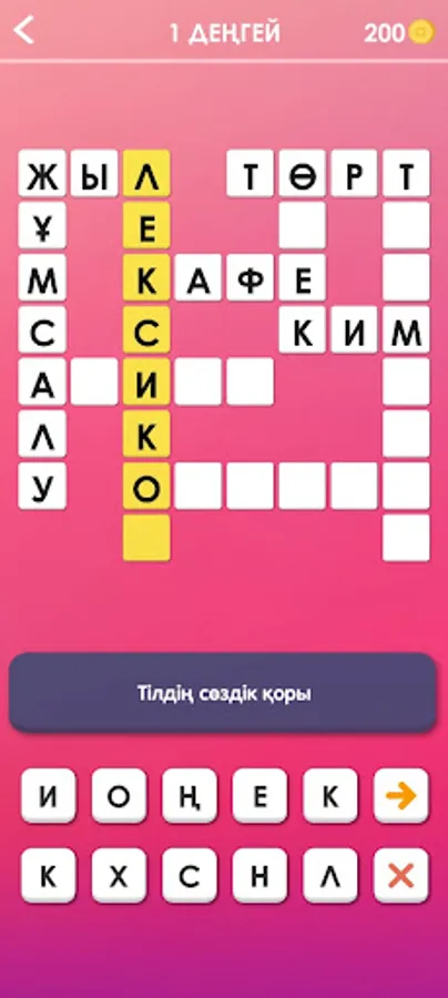 Crossword game in Kazakh. Have fun answering various questions! There are questions in the form of scanwords, namely geography, history and vocabulary.