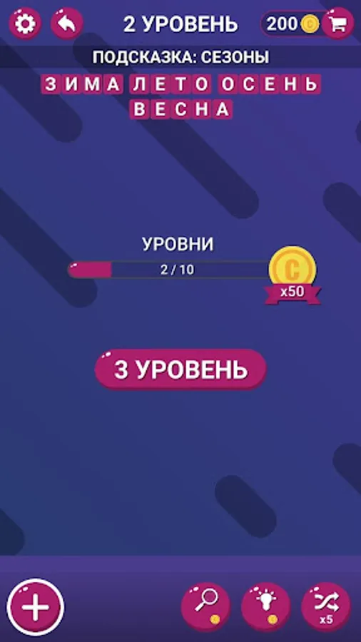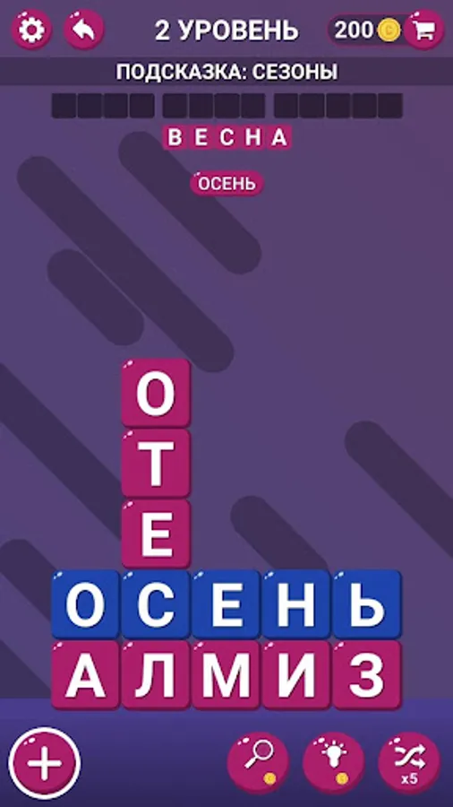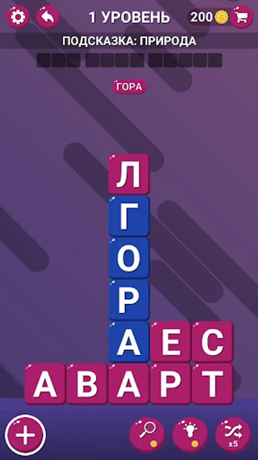Guess the words and go through each level, each puzzle and overcome all the difficulties that arise along the way. If you have trouble solving the puzzle, you can get a hint by using the coins you earn!