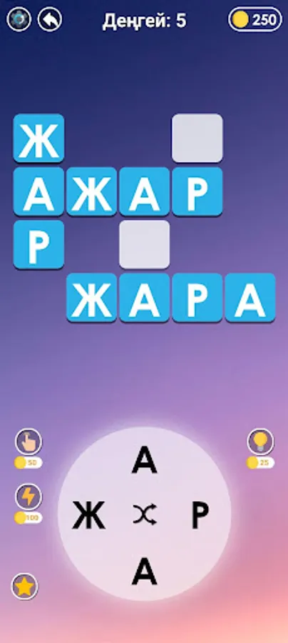 Find the hidden word by connecting the letters! The game is in crossword format. Not only your vocabulary will help you to find words, but also your ingenuity. Use help to pass difficult levels. You can try writing different word structures to search for a word. Enjoy your time!