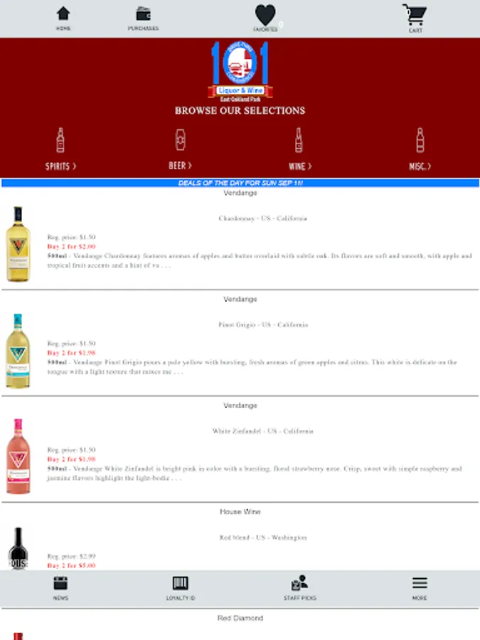 Have anytime/anywhere access to browse our entire inventory of in-stock wine and spirits! See what's in stock with pricing, make purchases, save favorites, snap a photo of a great wine or spirit for later recall, scan the app at checkout for Rewards Program, see past purchases, review staff picks, get great food pairing suggestions, and more!