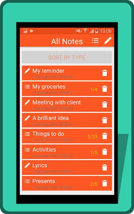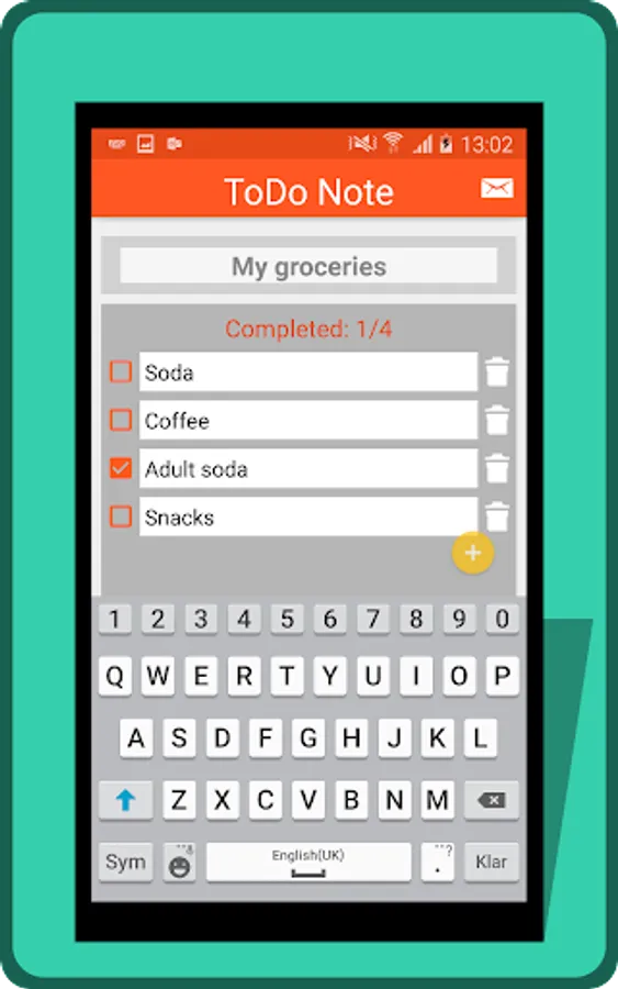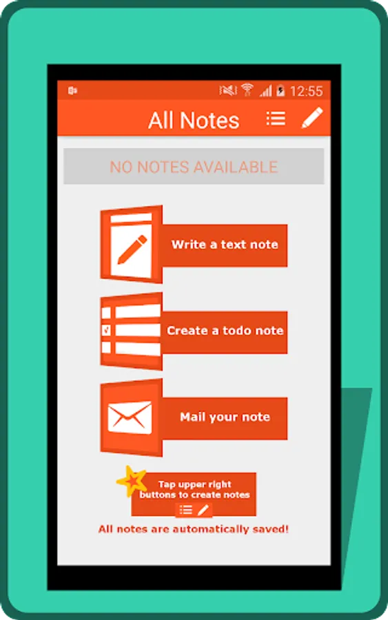 Simple and efficient note app. Create a simple text note or a list of todo items, and then mail them to whoever you want. Why not send your partner a groceries list with stuff to pick on the way home?