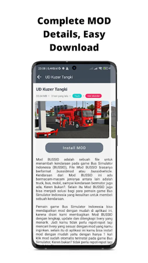 With various features in this application that makes it easy for you to try mods for the Indonesian bus simulator game BUSSID.
