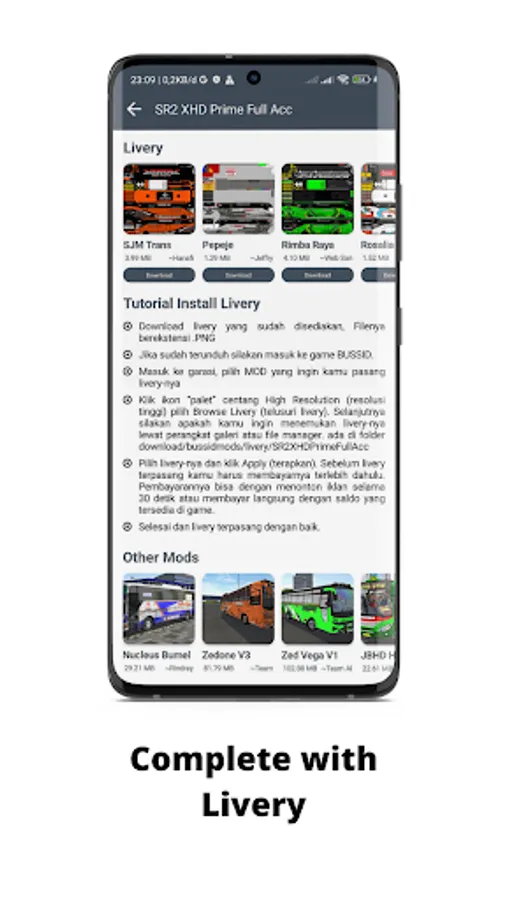 - Complete, There are dozens of MOD and BUSSID Livery that you can download in this application and will be added continuously at any time.