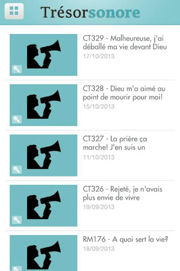 With tresorsonore application, find all the latest records sent to the site, sorted by categories. From your mobile, listen and share with your friends: all free!