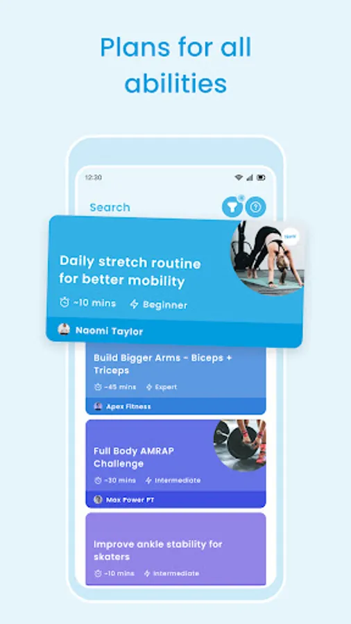 Whether you’re an absolute beginner who needs help getting started, or an experienced trainer seeking inspiration, we have plans for every level. Our comprehensive exercise library includes video instructions, bespoke exercises and additional elements such as impact, health & skill-related tools. If you’re still a bit stuck or need more specialised help, use our directory to track down fitness professionals in your area, or globally.