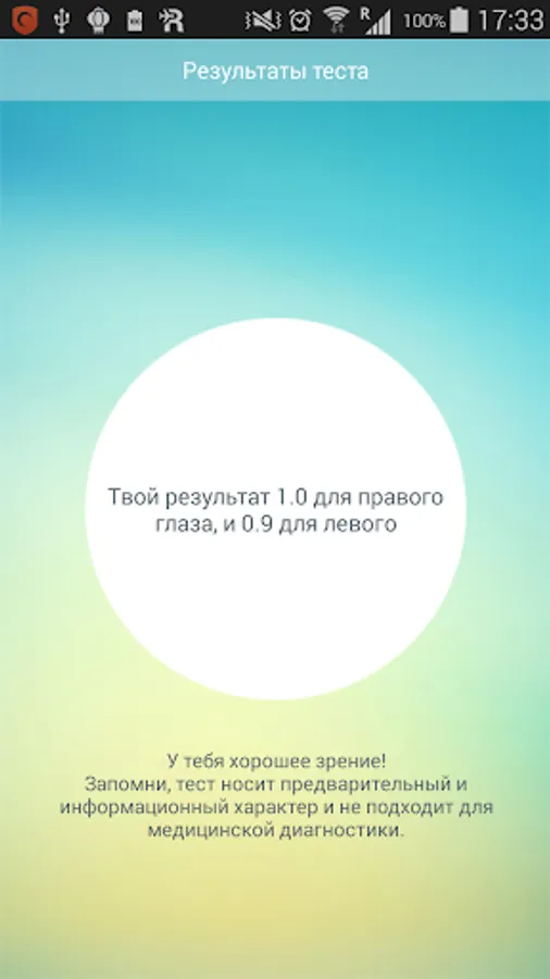 Of course, it is necessary to understand that the program itself - only a tool to track the change in the status of your vision. The accuracy of the results may depend on many factors, including to and from your equipment. Therefore iKulist never replace live doctor. If your feeling at odds with the results of test applications, do not neglect the timely visit to the optometrist. I wish you health and sharp vision for years to come!