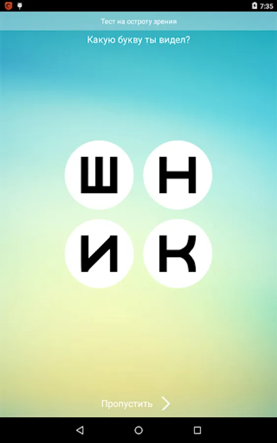 Get started is very simple. Run the application, place the device at arm's length. Follow the instructions on the screen. In the end, according to the results of your answers, iKulist will give its opinion. If the status of your vision worse than the norm, refer to the profile expert.
