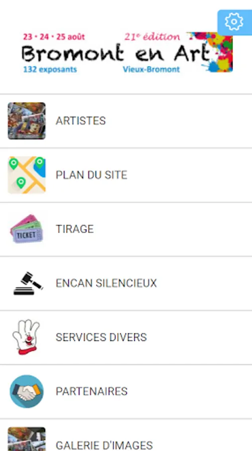 - Plan du site et localisation des artistes - Encan : visuel des œuvres mises à l’encan silencieux