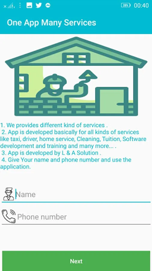 2. App is developed basically for all kinds of services like taxi, driver, home service, Cleaning, Tuition, Software development and training and many more... .