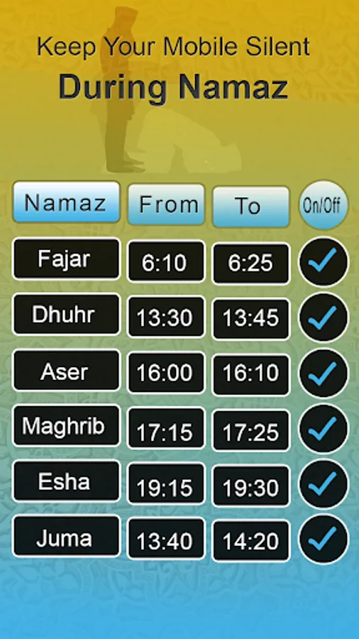 Set a specific auto silent mode for important meetings & for Muslim prayer