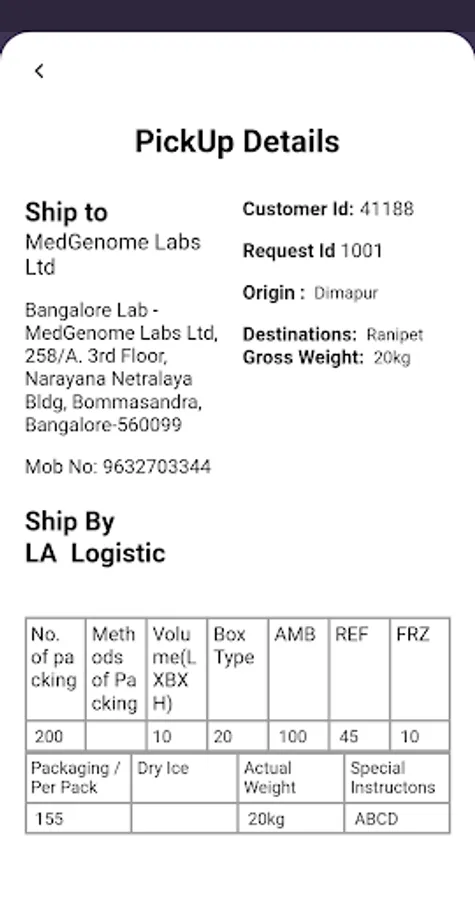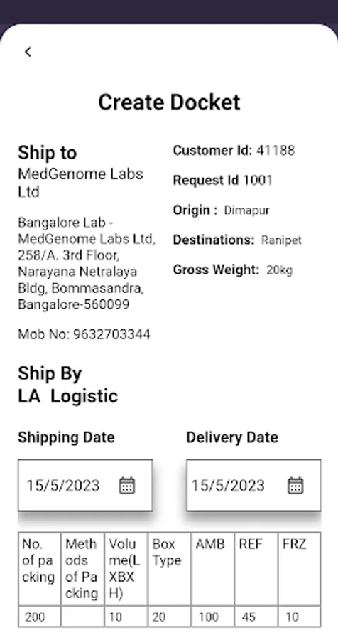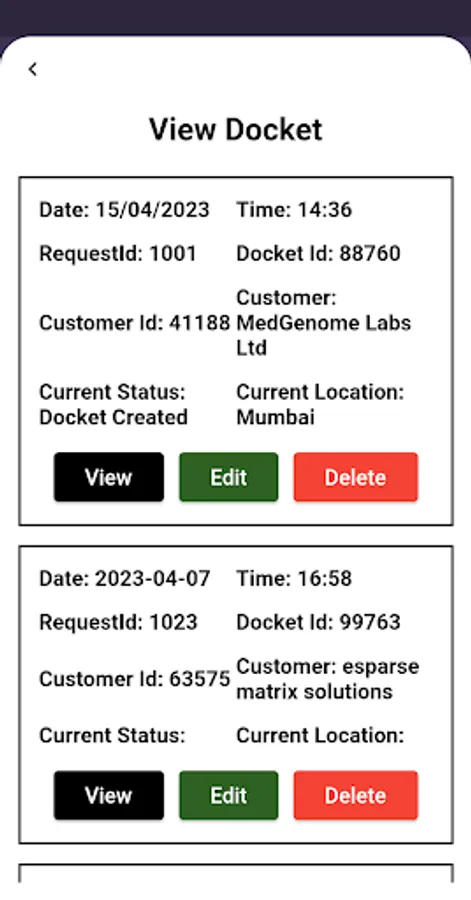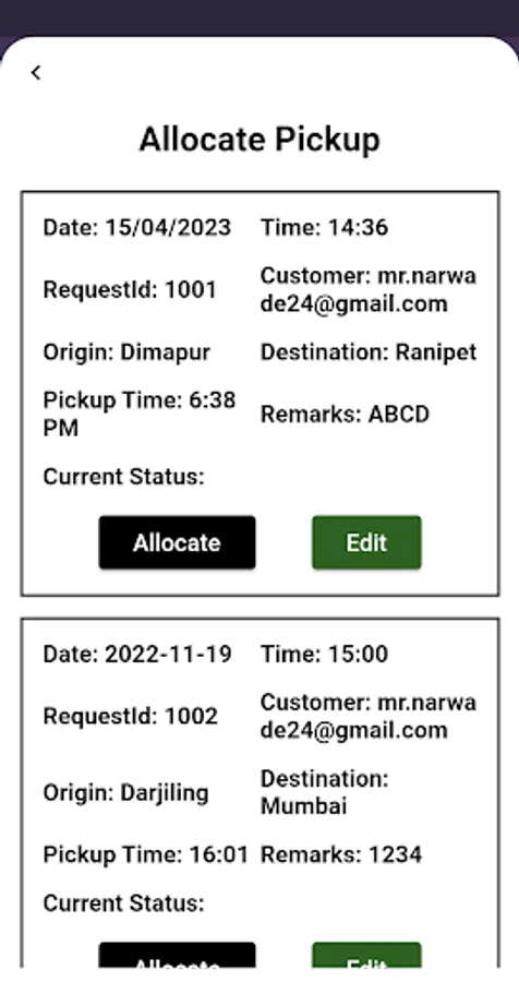 This app manages pick-up requests, delivery requests, and the status of the docket.