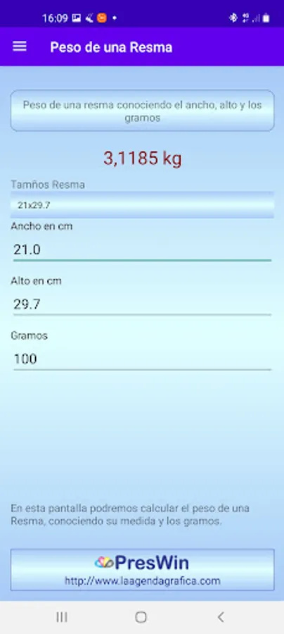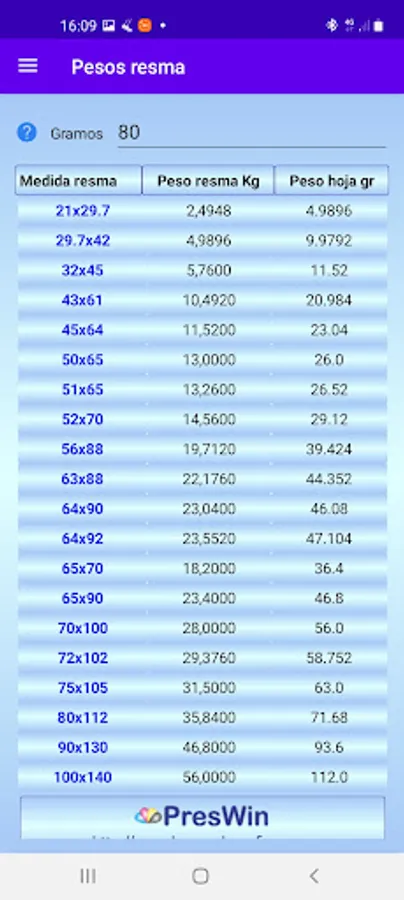 -Pesos Resma, calcula cuánto pesa una Resma dependiendo de su gramaje.