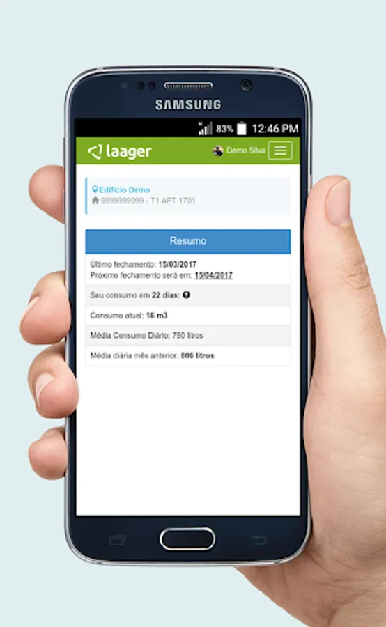 The application "meuconsumo" is a tool to monitor the tenants daily water consumption and Gas and Energy in their apartments whose individualization has been implanted with telemetry solutions company laager Sustainable Technologies.