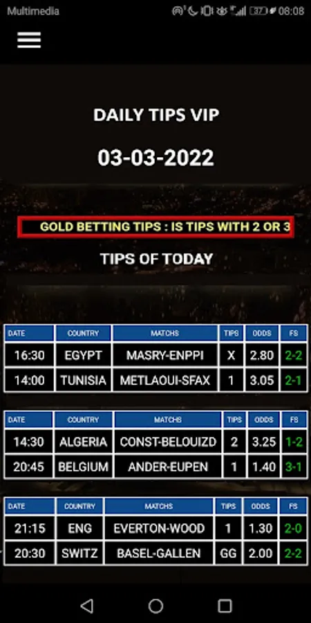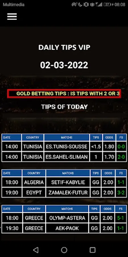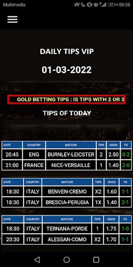 If you wish to have high odds, you can purchase one time our Real Bet VIP Betting Tips application and use it life time. Betting Tips VIP application provides sure betting tips and wins always.
