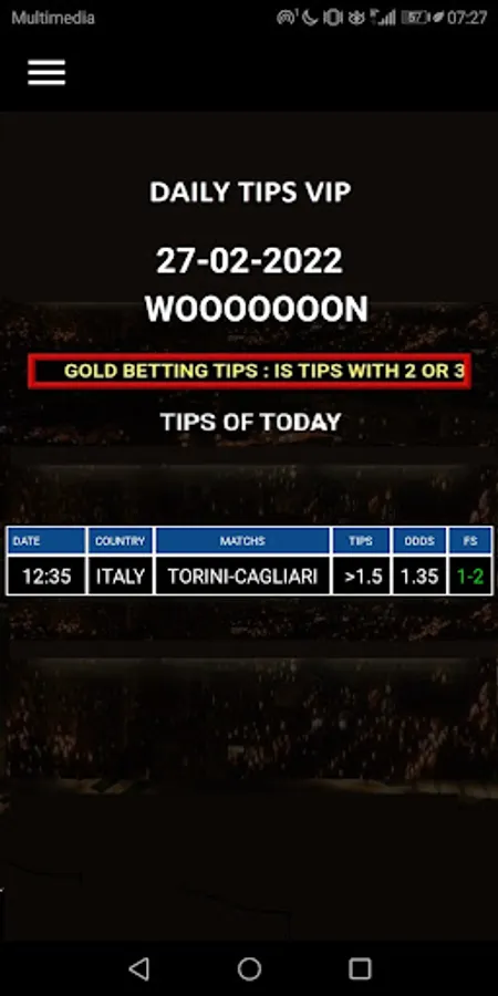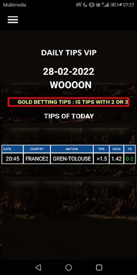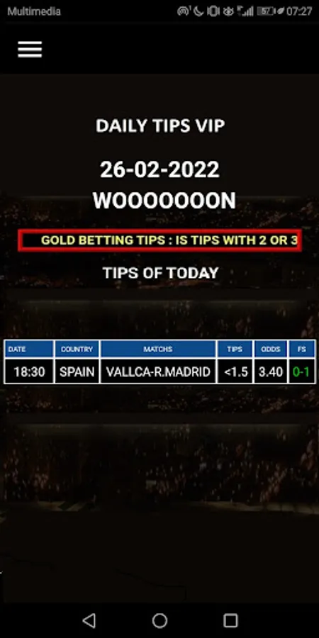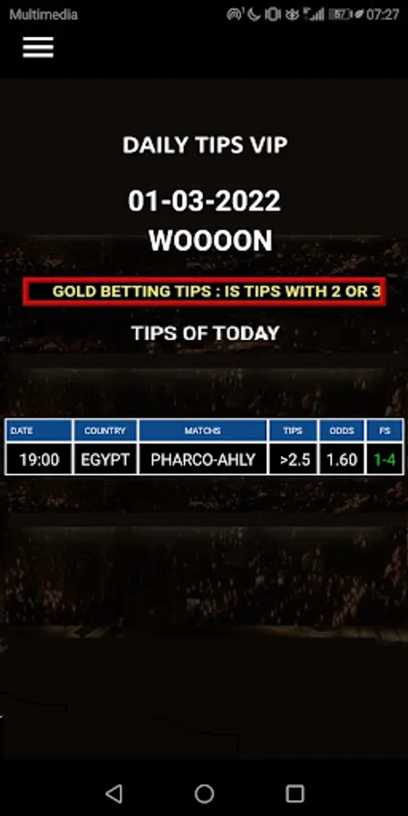 Betting TIPS VIP : DAILY TIPS are a professional Football Accumulator Betting sites that was set to help people like you make money from football. We have been making consistent profit with betting in football for years ago and now we offering the chance to share our experience for everyone who will buy our application.
