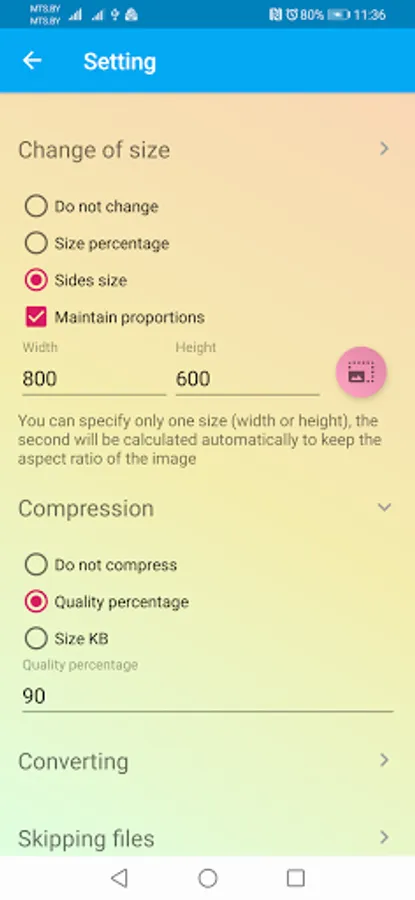 The app converts, compresses and resizes photos