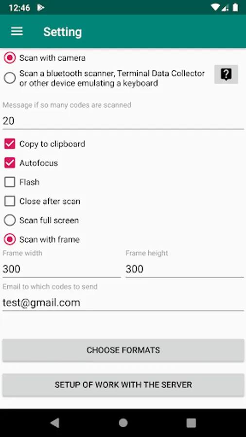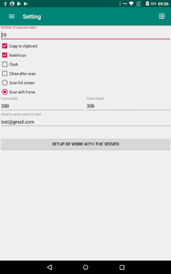 Email that will be automatically entered as the recipient if you decide to send the scanned QR codes by e-mail.