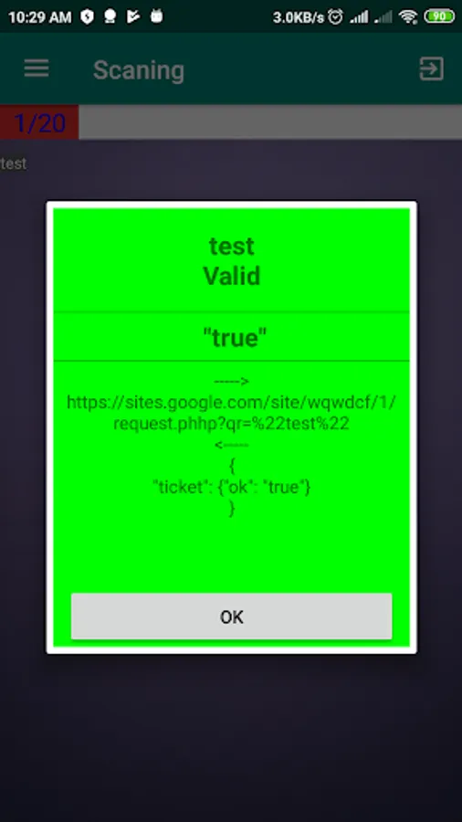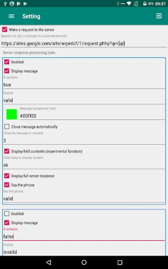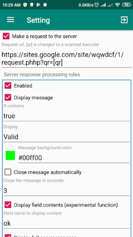 QR Code Scanner have a function for executing a http get request to the server with data from the QR code or barcode. Url is registered in the settings (there is now the default test server). The variable [qr] will be replaced by the scanned QR or barcode.