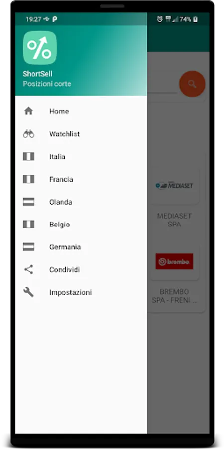 It is possible to view the changes in the short positions on the major securities of the European markets.
