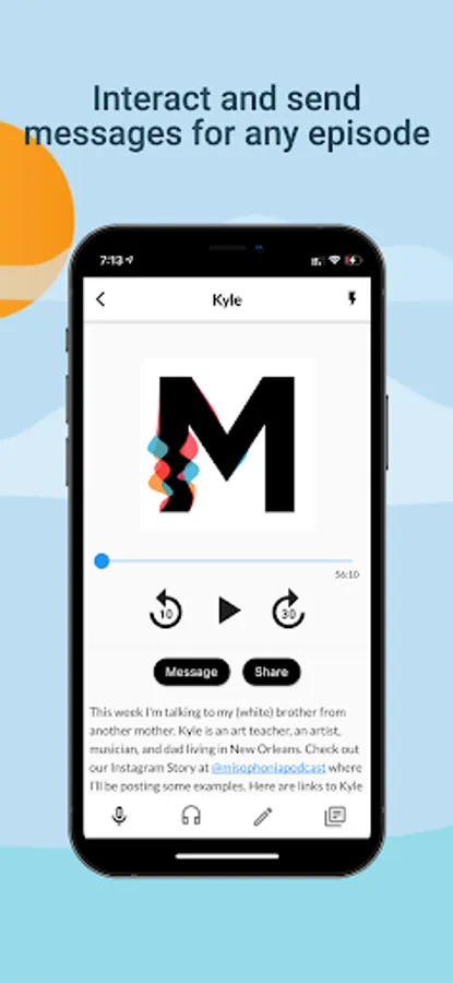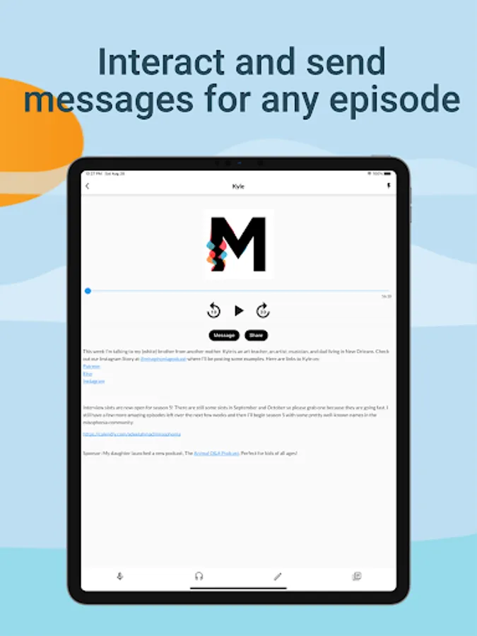 - Listen to all episodes of the podcast and, exclusive in this app, send a message to the host about any episode.