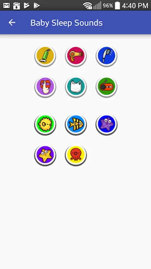- Vacuum cleaner, Hair dryer, Shower, Radio, Shh Sounds & Shusher