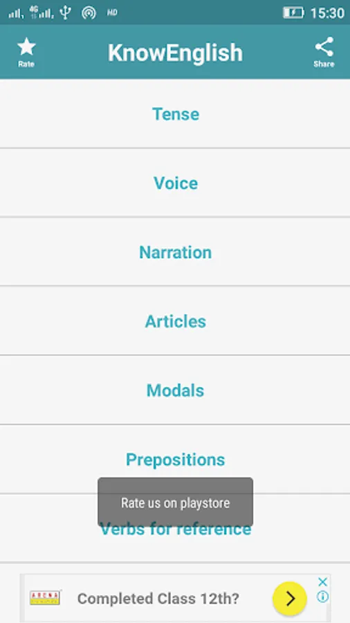 You can tell us about this English learning offline app using rate option.