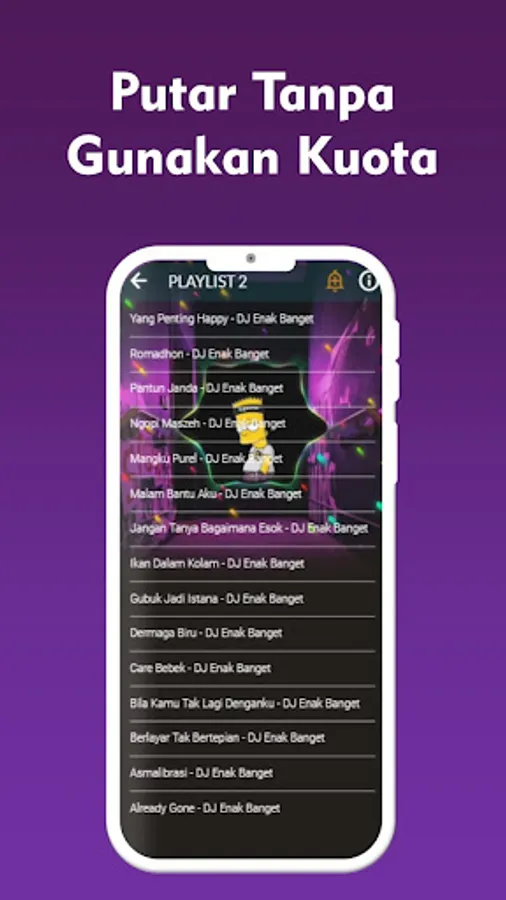 This Offline Full Bass Mp3 DJ Music application can be heard in Offline Mode without worrying about spending your kouta, with clear audio quality and pleasant to hear.