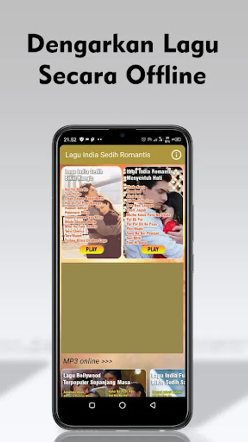 Romantic Sad Indian Songs is an application that provides a complete collection of Indian songs that contain sad and romantic elements. With this romantic Indian songs app, users can enjoy Indian songs which are emotional, melancholic and contemplating love.