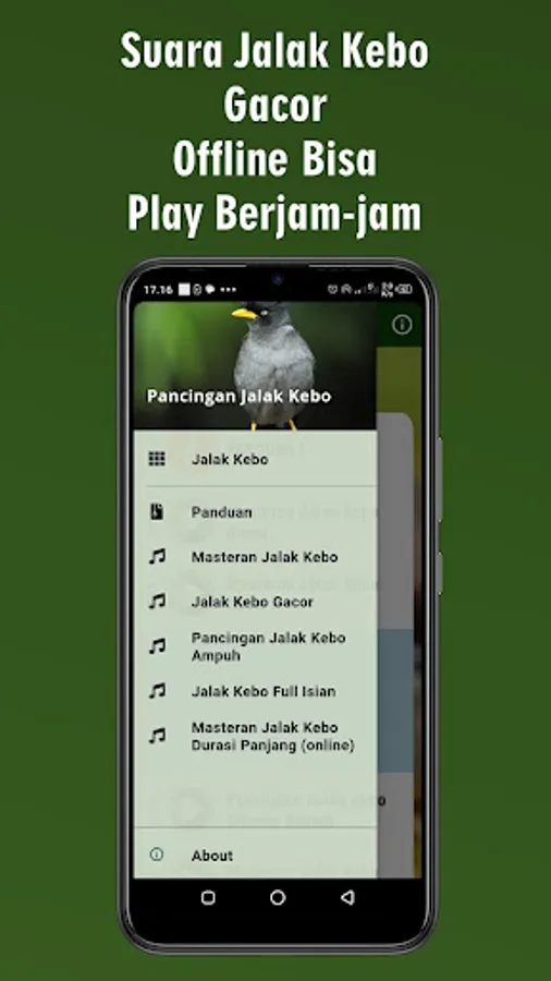 This application is equipped with an automatic playback feature that can play recordings of the sound of starlings kebo repeatedly with an adjustable duration. With this feature, users can leave their pet birds for a long time without worrying about the birds losing their mastering time.