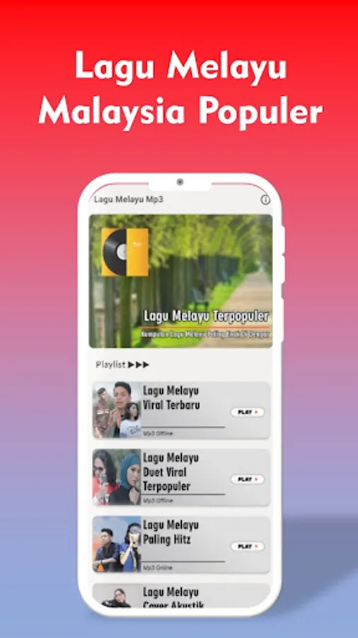 Malay Songs Mp3 is an application that contains a collection of Malay songs or old and newest Malaysian songs that are currently popular. With this Malay song application, you as a lover of Malay songs or Malaysian songs can listen to Malay songs anywhere and anytime without having to worry about your internet connection.