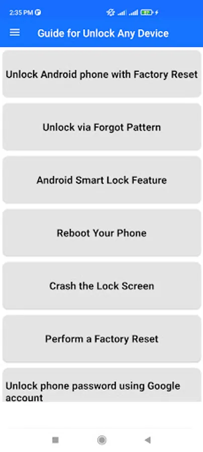 This application provide guide to solution of problems of device locking or unlocking. This application Easy Unlocking Guides Process Explained.