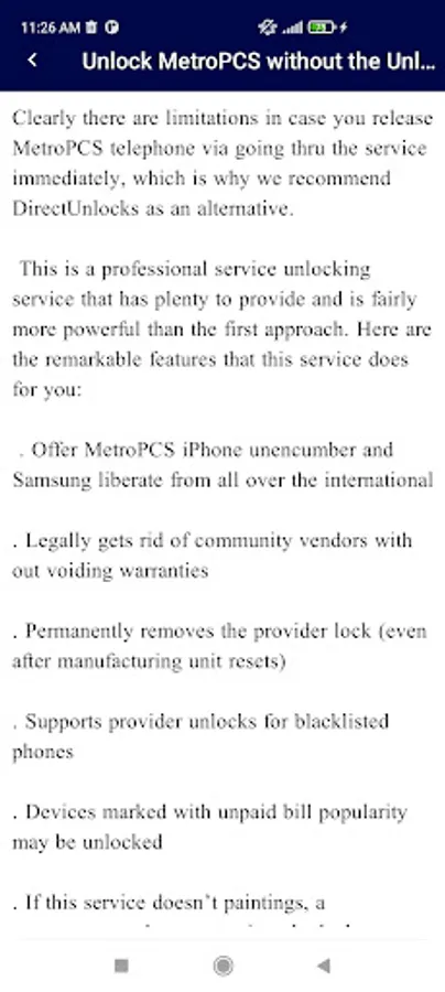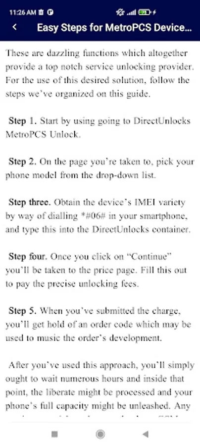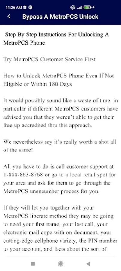 This app only guide you. .metropcs phone and its unlocking method and tricks app.