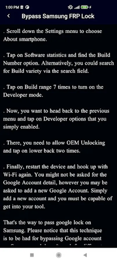 Guide for Samsung FRP unlock guide apps unlock network by tricks is the perfect option for all Samsung models.We can use any SIM card on your unlocked Samsung phone and unlock frp your phone without sim card all guideline apps.