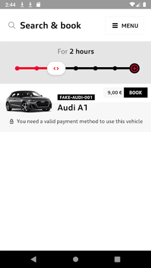 > Select the location, select the car and the time slot, and confirm your booking