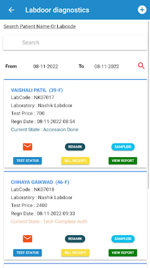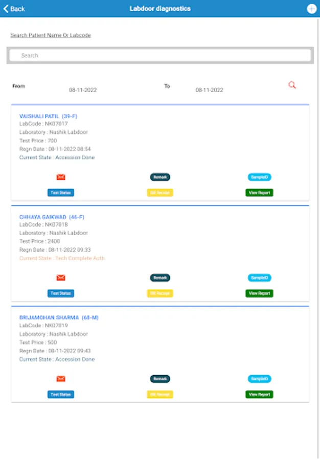The history of test report is also maintained on this application. You can also upload photo of the prescription which will be converted into test at LAB end.