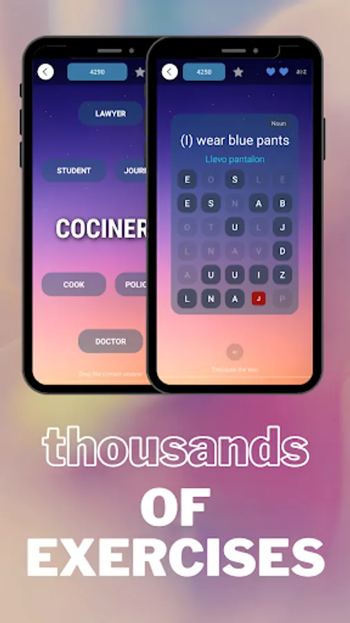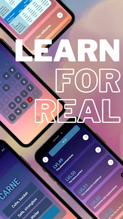 We will teach you in a slow pace. One level for every grammar aspect. Read a theoretical lesson and practise what you learnt in 4 different exercises: Theory reinforcement, Vocabulary I, Vocabulary II and Translation. Every exercise is natively voiced with more than 2000 recordings. 🔊