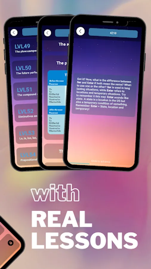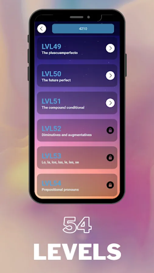 54 lessons, from 0 to advanced. A full Spanish course in your pocket!