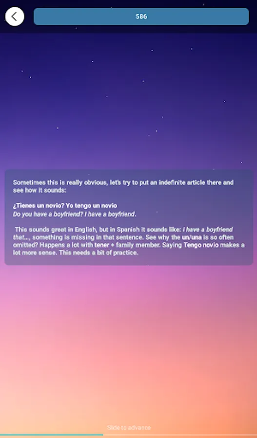 Pay attention! You will only advance level if you solve enough exercises correctly. Label Spanish is designed to make you think before answering!