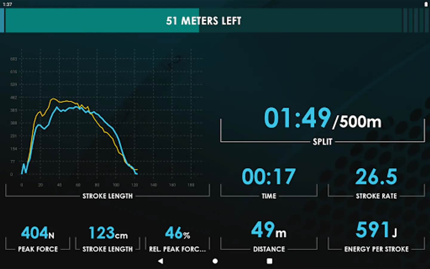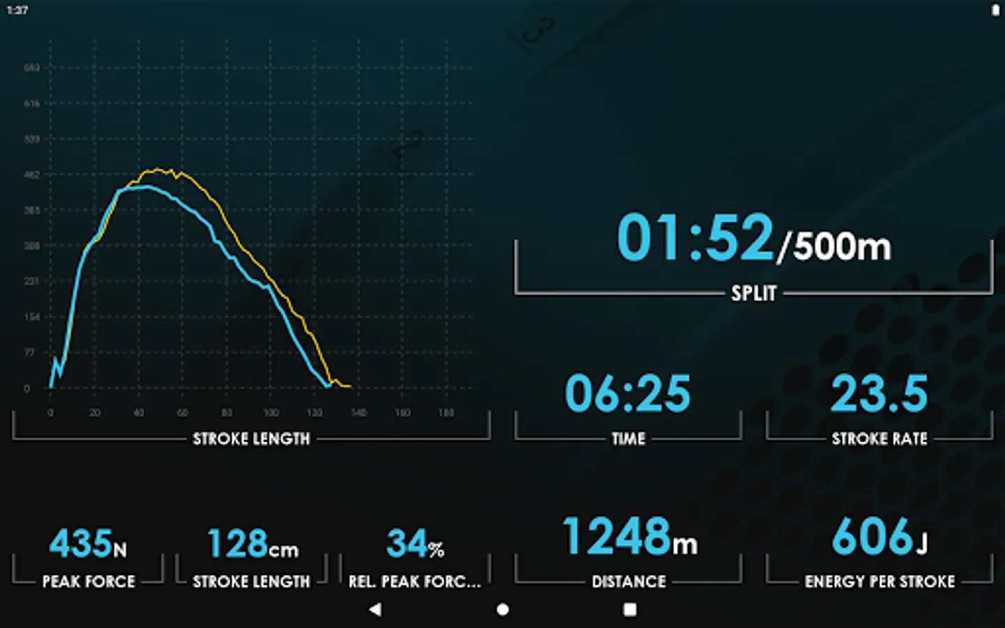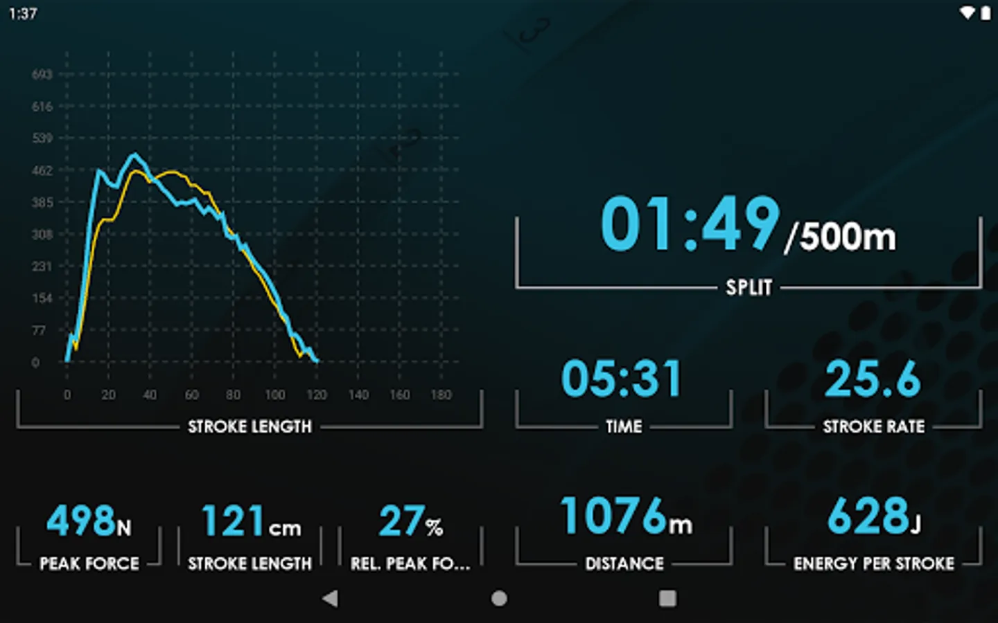Each stroke of your workout is recorded and can be exported to your RP3 Rowing account on https://rp3rowing-app.com/ or shared by email directly with your coach. Go online to get a deep dive into your data or export it for further analysis.